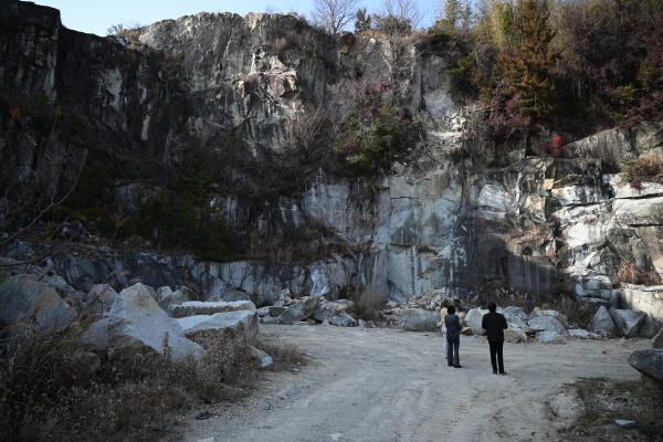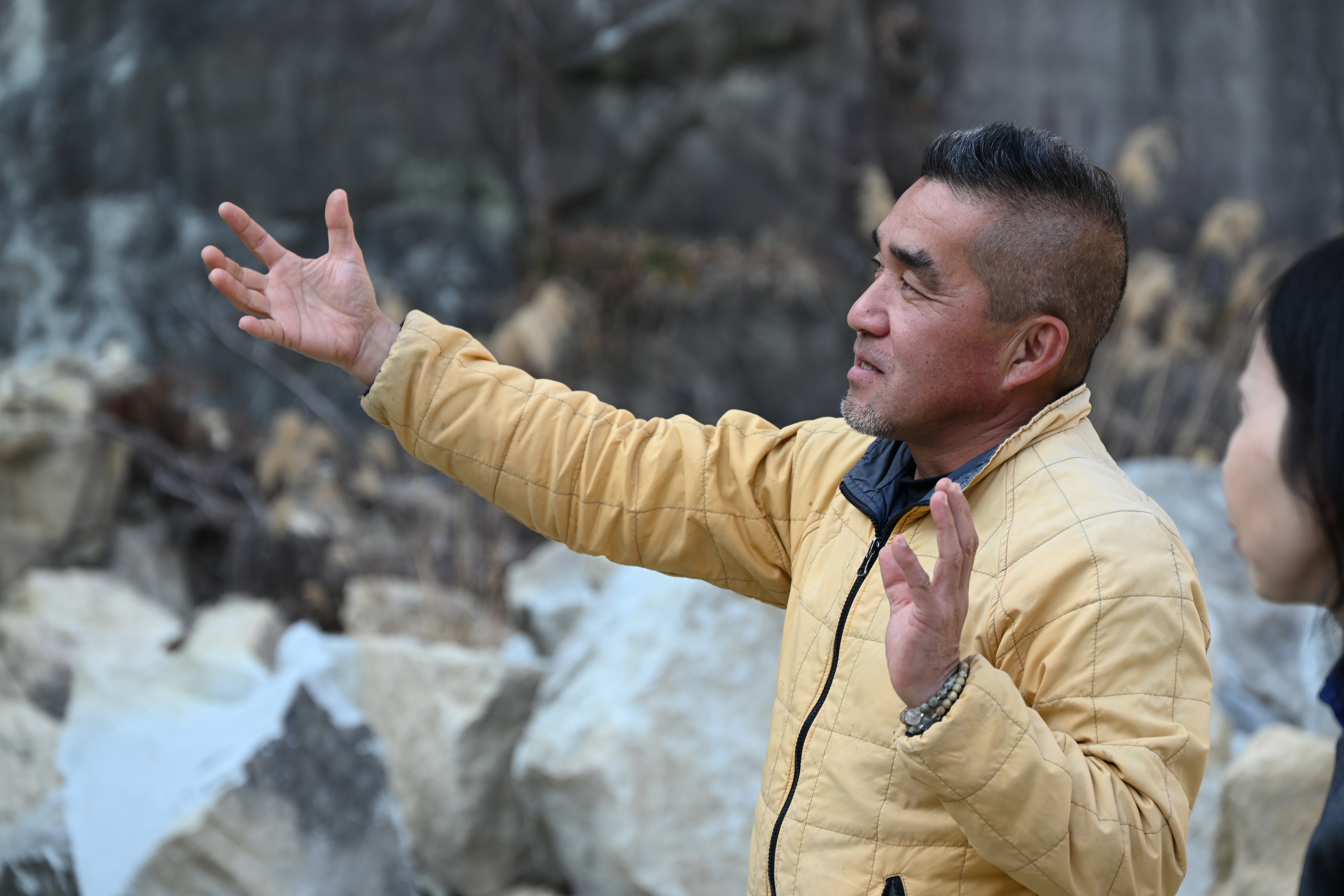 中々立ち入れない採石場で、自分好みの竜山石を探します。