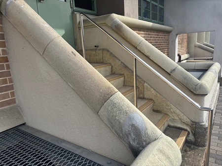 | JR三ノ宮駅周高架機銃掃射痕(横断歩道からの位置関係) |