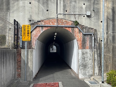 JR摩耶駅より西へ約2分歩いたところに、貨物駅下を通るためにつくられたレンガ構造のトンネルがあります。昭和20(1945)年の3月と6月の空襲時には、人々は防空壕の代わりにこの場所へ逃げ込みました。同年6月5日の空襲では、周囲一帯が火の海となったといわれています。