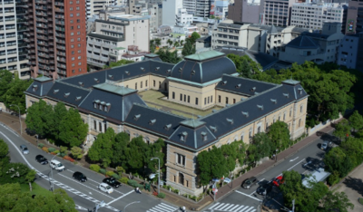 保存・修復の基本的な考え方は、外観は創建当時の姿に近い形で復元し、内部は全面的に改修することでした。この方針により、外部に関しては、外壁面の完全保存、南側正面のマンサード屋根の丸屋根への復元と北面の台形屋根の保存、大会議場と屋上庭園の新設(かつての中庭部分)、天然スレート材による「うろこ葺き」の屋根及び戦災で焼失した門衛所の復元、別棟の茶室「楠園亭」の新設が行われました。