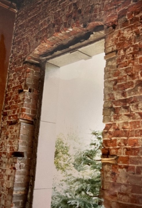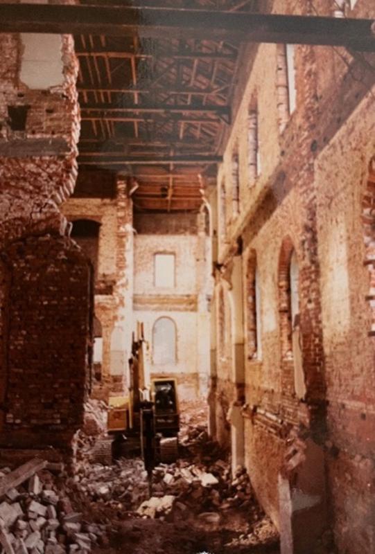 1985年の迎賓館への改築時の写真で、赤レンガを組み上げて外壁や内壁を造る組積(そせき)構造を確認することができます。