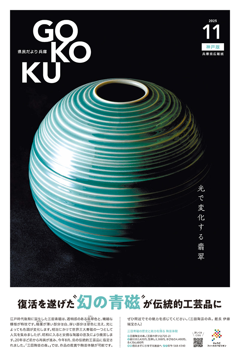 江戸時代後期に誕生した三田青磁は、透明感のある翡翠(ひすい)色と、繊細な模様が特徴です。釉薬(ゆうやく)が薄い部分は白、厚い部分は翠(みどり)色に見え、光によっても色調が変化します。明治にかけて世界三大青磁の一つとして人気を集めましたが、昭和に入ると安価な陶器の普及により廃窯します。20年ほど前から再興が進み、今年8月、県の伝統的工芸品に指定されました。「三田陶芸の森。」では、作品の鑑賞や陶芸体験が可能です。ぜひ間近でその魅力を感じてください。(三田陶芸の森。 館長 伊藤瑞宝さん)
