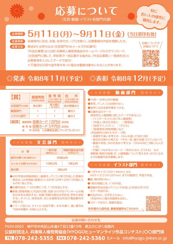 詳細な応募要領については、兵庫県人権啓発協会ホームページ(外部サイトへリンク)をご覧ください。
