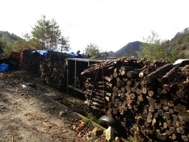県内外から回収した廃ほだ木のストック