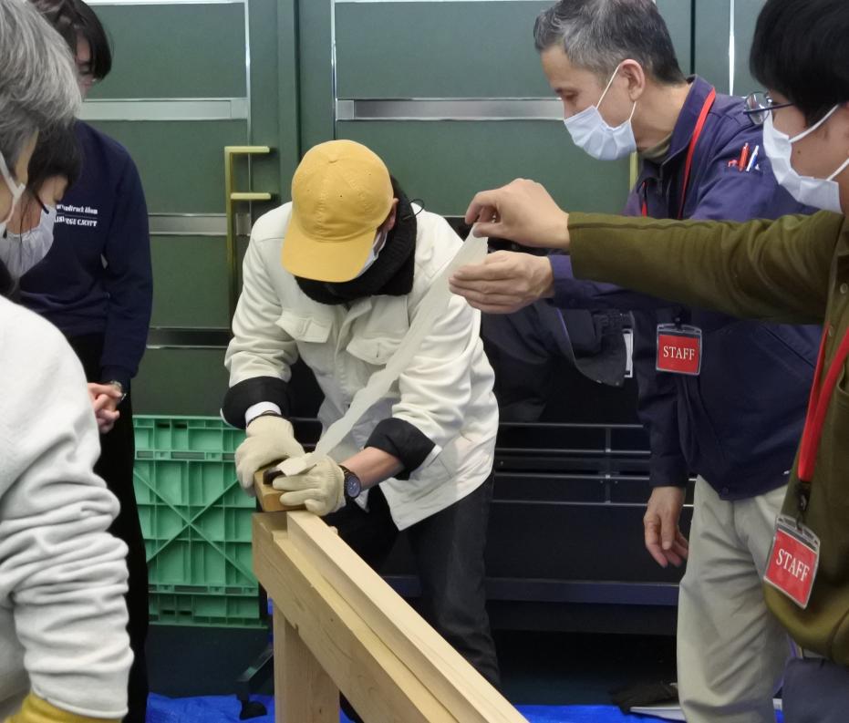 ハローワークで紹介されて来ました。職業訓練校については、知らなかったんですが、読むだけじゃ分からなかったイメージがちょっと見えて、良いきっかけになりました。建築系や電気系の職業が気になっていたんですが、今日はカンナ削りも体験できて色んな職種を一気に見せてもらえるこういったイベントに来られて良かったと思います。今からコンセント配線体験に行ってきます。
