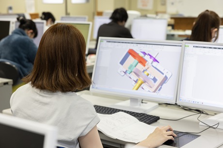機械製図、CAD/CAM、NC工作機械による機械設計・工作技術を幅広く習得※企業実習を通じて若年者の職業キャリア形成を支援しながら、就業能力を高める(デュアルシステム訓練)