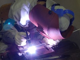 溶接に関する専門的な知識を学び、被覆アーク溶接、半自動アーク溶接、TIG溶接による各種材料の溶接施工の技術を習得