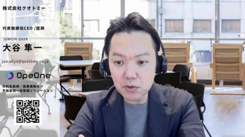 プロポーザル審査を経て、選ばれたのは株式会社クオトミー。医師でもある大谷さんが、医療従事者の課題を解決することで、医療を支えたいとの想いから創業した、ヘルスケアスタートアップだ。スマート手術台帳サービス「OpeOne」を展開し、外科系医師の非医療業務の効率化に取り組んでいる。